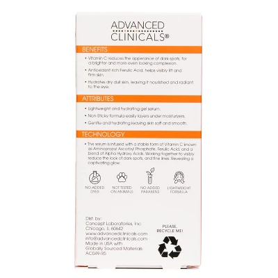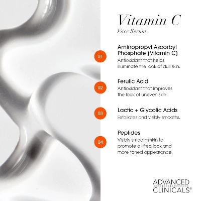 Revitalize your skin with Advanced Clinicals Vitamin C Face Serum. This powerful formula brightens your complexion, evens out skin tone, and reduces the appearance of dark spots and fine lines. Infused with stabilized Vitamin C, hyaluronic acid, and antioxidants, it enhances collagen production, deeply hydrates, and protects against environmental damage. Perfect for all skin types, this serum delivers a radiant, youthful glow, making it a must-have in your skincare routine.