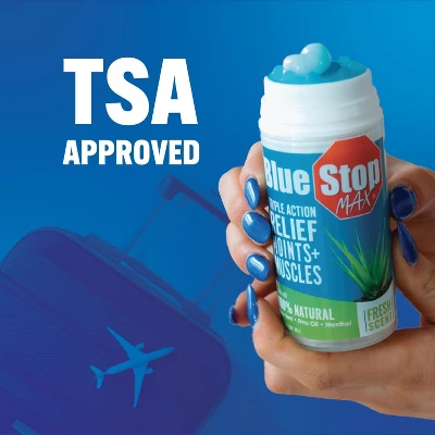 - Convenient design makes Blue Stop Max Massage Gel Mess Free 3.4 Oz simple for home or travel.