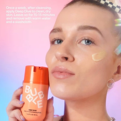 Bubble’s Deep Dive Exfoliating Mask is a powerful face-smoothie of fruit enzymes and alpha hydroxy acids that works down into pores and on the surface to reveal softer, smoother, more even-looking skin.
