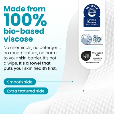 Clean Towels Blemish Control 50 Count is a pack of ultra-durable, single-use face towels specifically designed for oily and blemish-prone skin. Featuring a unique, one-raised dot exfoliating texture, these towels provide deeper cleansing and effectively remove excess oil without irritating the skin. Made from 100% USDA biobased fabric, they are dermatologist-approved, clinically tested, and clinically shown to reduce oil and redness in 3 weeks or less.