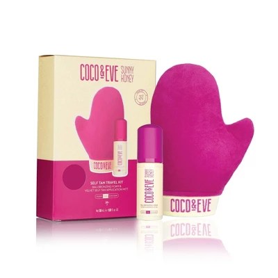 Includes; Coco & Eve’s Sunny Honey Bali Bronzing Foam (1.6 fl oz) and a Hypoallergenic Soft Velvet Self Tan Mitt (1 ct).