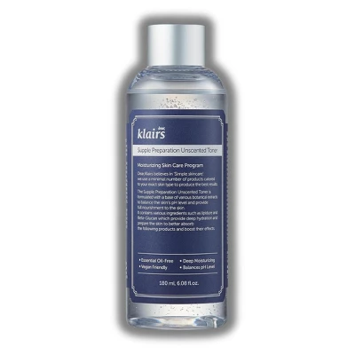 Hydrate and balance your skin with the Dear, Klairs Supple Preparation Unscented Toner, a lightweight, refreshing formula designed for all skin types—even the most sensitive. This unscented version of the brand’s cult-favorite toner is free from essential oils and alcohol, making it a gentle yet effective choice for daily use.