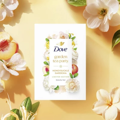 Garden tea parties, blooming gardenias, and sweet honeysuckle moments. If your perfect day includes a stroll through lush gardens and sipping tea under sunlit trellises, our Honeysuckle Gardenia Beauty Bar, Dove’s latest Limited Edition, is made just for you. With the irresistible scent of gardenia petals, sweet honeysuckle, and a touch of lush bergamot, this indulgent bar soap wraps you in a soft, floral embrace. With gentle cleanser and deep moisture, this beauty bar nourishes and cares for skin. This is your invitation to a garden tea party—no RSVP needed. Just lather up and let Dove do the rest.