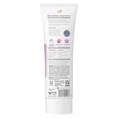 Dove Pro-Retinol + Firming Cream Serum is a non-greasy, fast-absorbing, lightweight, all-over body serum that delivers next-level skin care that goes beyond moisturization. This high-potency body serum is made with face care ingredients and supports skin’s natural regenerative process for visible results: plumps with hydration, visibly firms, lifts, and improves elasticity for bright, radiant, healthy-looking skin. Our individual skin needs are unique and varied, requiring tailored solutions to effectively address skin concerns. Visible skin health and radiance can be compromised by a variety of factors leading to loss of elasticity, dullness, or lack of firmness and tightness. Dove Cream Serums were developed with dermatologists with the purpose of bringing the potency and efficacy of face serums into body care. This body serum is a science-backed formula that delivers 48-hour moisture, is clinically proven to visibly improve elasticity, and is made with face care ingredients Pro-Retinol, Collagen Peptides, Niacinamide, and Antioxidants. Dove Cream Serums are clinically tested with over 1,000 women to ensure safety and efficacy across all skin types. This formula is designed for all-over, daily use in place of body lotion and has a velvety application tested and loved by real women. Other skin needs or concerns? Explore our full range of Dove Cream Serum dermocosmetic solutions – all developed with dermatologists, designed for all skin types and tones, suitable for sensitive skin, and proven for visible results.
