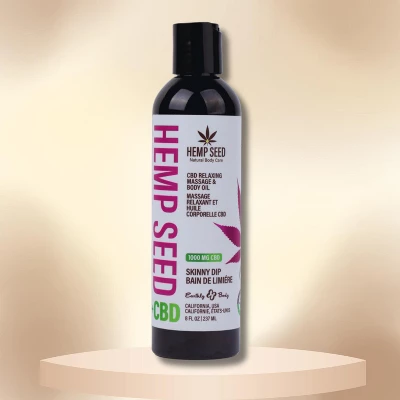 Indulge in the silky smooth touch of Earthly Body Hemp Seed Massage & Body Oil, a premium blend crafted to nourish your skin while enhancing relaxation. Infused with natural hemp seed oil and 1000mg of hemp, this nutrient-rich formula deeply moisturizes without leaving behind a greasy residue. With every application, it delivers superior slip, making it ideal for both massage and daily body hydration. The lightweight consistency absorbs quickly, leaving your skin refreshed, supple, and silky soft to the touch. A subtle “Skinny Dip” fragrance adds a warm, inviting aroma that uplifts the senses, turning any moment into a spa-like experience.