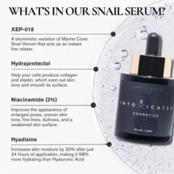 Snail Serum is a luxurious anti-aging formula designed for extreme lifting, regeneration, and hydration. Powered by XEP™-018, a biomimetic peptide from Marine Cone Snail venom, it smooths skin, reduces wrinkle depth, and visibly softens expression lines while maximizing moisture retention. Additional key ingredients include:Hydraprotectol: Boosts firmness, supports collagen and elastin production, smooths skin, and evens tone.Moringa Oil: Reduces fine lines, hydrates, heals, fights acne, and soothes inflammation.Hyadisine: Increases moisture by 20.6% in 24 hours—58.5% more hydrating than Hyaluronic Acid.Niacinamide (2%): Minimizes pores, evens skin tone, smooths fine lines, and brightens dull skin.Vitamin C: Brightens and evens skin tone while supporting collagen and elastin production.Vitamin E: Antioxidant that protects cells and locks in moisture.Use daily for best results.