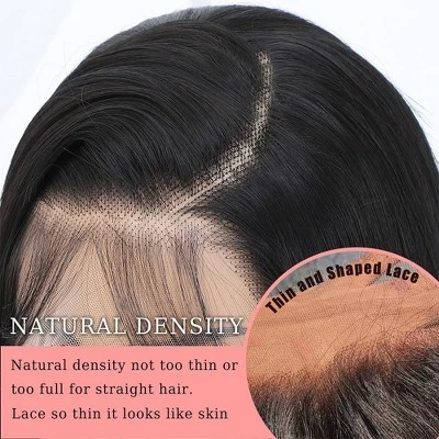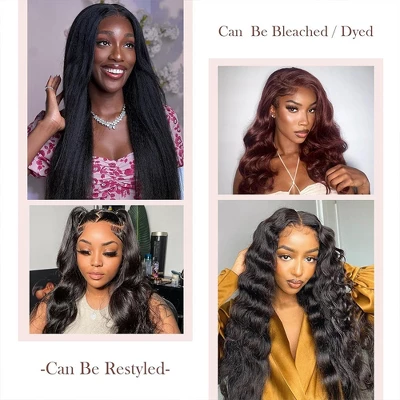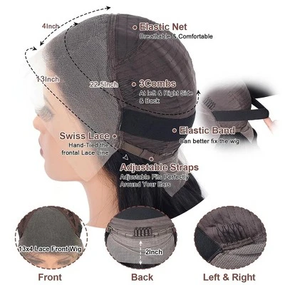 1. Glueless wig material: glueless blended human hair wig with bangs human hair full cuticle aligned. Can be restyled as your own hair. No tangle and shedding. Unprocessed natural black color take color and hold curls well.2. Upgrade wig cap: Body wave 13×4 lace front wig blended human hair new bulid-in elastic wig cap. Fasten your side lace to ensure wig stays in place all day long. Wide elastic band and adjustable straps easy install and fit 22-22.5 inches head.3. Ready to wear pre everything wig design: Glueless blended human hair wigs with bangs ready to wear design, pre-cut, pre-bleached knots, pre-plucked. Just put it on and go, saving time and without the mess and fuss of glues and adhesives.4. Natural look: Lace front wig blended human hair bangs design with big 13×4 lace on top. This enhancement makes the wig appear more natural compared to non lace front wigs. The lace blends seamlessly with various skin tones, ensuring an undetectable hairline.About this item1. Glueless wig material: glueless human hair wig with bangs human hair full cuticle aligned. Can be restyled as your own hair. No tangle and shedding. Unprocessed natural black color take color and hold curls well.2. Upgrade wig cap: Body wave 13×4 lace front wig human hair new bulid-in elastic wig cap. Fasten your side lace to ensure wig stays in place all day long. Wide elastic band and adjustable straps easy install and fit 22-22.5 inches head.3. Ready to wear pre everything wig design: Glueless human hair wigs with bangs ready to wear design, pre-cut, pre-bleached knots, pre-plucked. Just put it on and go, saving time and without the mess and fuss of glues and adhesives.4.Natural look: Lace front wig human hair bangs design with big 13×4 lace on top. This enhancement makes the wig appear more natural compared to non lace front wigs. The lace blends seamlessly with various skin tones, ensuring an undetectable hairline.