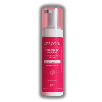 Infused with nourishing ingredients, Kerotin Volumizing Mousse not only enhances appearance but also supports overall hair health. Antioxidants and vitamins provide protection against daily stressors while restoring softness and shine. Sweet orange oil imparts a fresh, uplifting fragrance, making hair smell as good as it looks. Aloe vera delivers intense hydration, smoothing the cuticle and promoting manageability without weighing hair down. Panthenol strengthens fibers while improving elasticity, ensuring your strands stay resilient with repeated use. Designed to deliver visible lift and long-term support, this mousse provides a balance between effective styling performance and targeted care, allowing hair to look voluminous while feeling healthy and nourished.