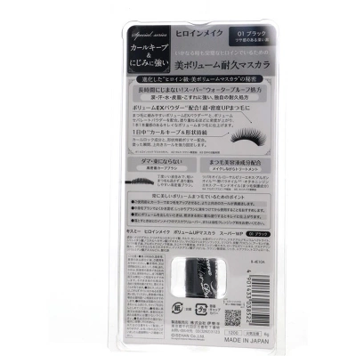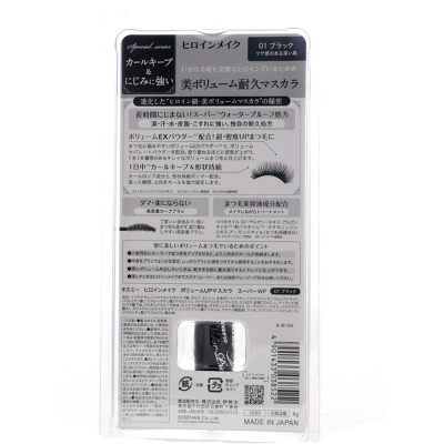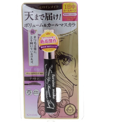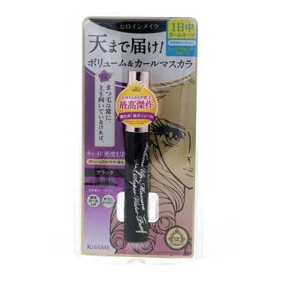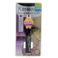 KISS ME Heroine Make Volume Up Mascara Super Waterproof, 01 Jet Black, 0.2 oz, is a waterproof mascara that provides intense volume and length. Its unique formula ensures that lashes stay voluminous and defined without clumping or smudging. The mascara is designed to withstand sweat and humidity, making it perfect for long-lasting wear.