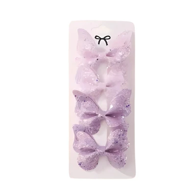 Add a touch of sparkle to any hairstyle with this set of 4 glitter butterfly hair clips. Designed with sequins and bows, these cute and trendy hairpins are perfect for girls, kids, and women, bringing a playful yet stylish accent to everyday looks or special occasions. Made from durable polyester and alloy materials, they’re lightweight, comfortable to wear, and easy to match with different outfits.