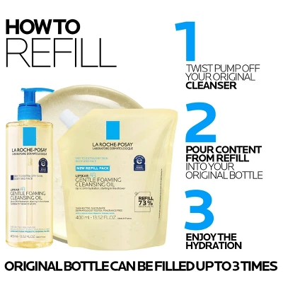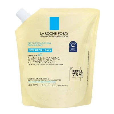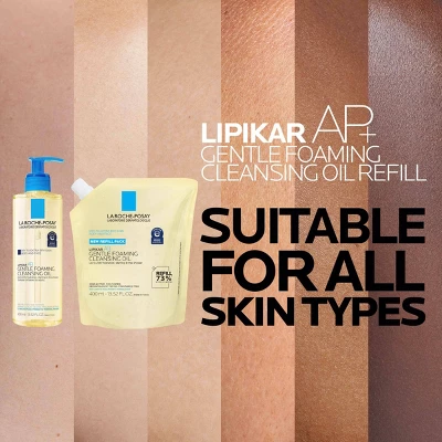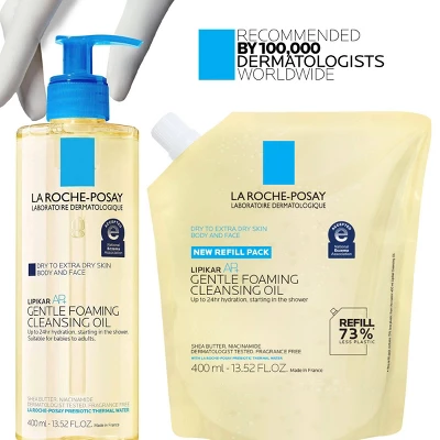 La Roche Posay Lipikar AP+ Gentle Foaming Cleansing Oil is a gentle oil-to-foam body and face cleanser for dry to extra dry, sensitive skin. It provides 24-hour hydration starting in the shower while instantly soothing skin. This cleansing oil gently removes dirt and debris from the skin while providing intense moisture. It cleanses skin without stripping and helps protect skin from the harsh drying effects of water.