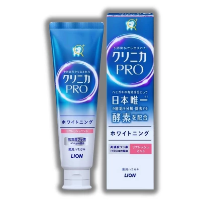 Clinica Pro All in One Toothpaste Rich Citrus Mint (3.35 oz) is specially developed to deliver complete oral care with advanced Japanese dental science. Powered by an active enzyme formula, it works deep between teeth and gums to break down stubborn plaque that toothbrush bristles often miss. This clinically developed paste helps combat hidden build-up, keeping your smile fresher and cleaner throughout the day. The refreshing blend of citrus and mint ensures long-lasting breath confidence with every brush.