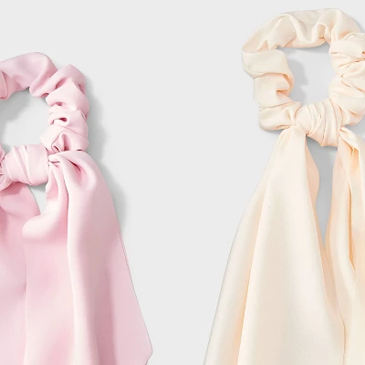 Two-piece long tail hair twister set from Wild Fable™. Includes two pairs of fabric hair twisters with scarf-like long tails — one in light pink and one in a cream color. Great for securing and styling your hair and suitable for all hair types.