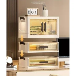 Lycvki 1 Door Foldable Transparent Large Capacity Cosmetics Storage Box With 2 Drawers