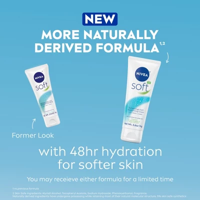 NIVEA Soft Moisturizing Creme is a lightweight, fast-absorbing formula that delivers long-lasting hydration for face, hands, and body. Infused with Vitamin E and Jojoba Oil, this versatile cream nourishes skin while leaving it soft, smooth, and refreshed without greasy residue. Perfect for daily use, itās gentle enough for sensitive skin and provides a burst of moisture whenever your skin needs it most. The convenient 2.6 oz size makes it ideal for at-home use or travel.