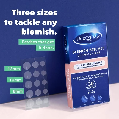 - NOXZEMA ULTIMATE CLEAR BLEMISH PATCHES – Made of hydrocolloid, these blemish patches help absorb fluid and reduce the appearance of blemishes while creating a protective barrier—so you can face the day with confidence.