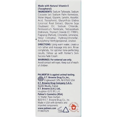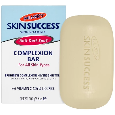 Palmer’s Skin Success Anti-Dark Spot Complexion Bar is enriched with Vitamin E and a unique anti-dark spot complex to help even skin tone and brighten complexion. This moisturizing bar deeply cleanses while working to fade the appearance of discoloration and dark spots. Perfect for daily use, it leaves skin soft, smooth, and more radiant over time.