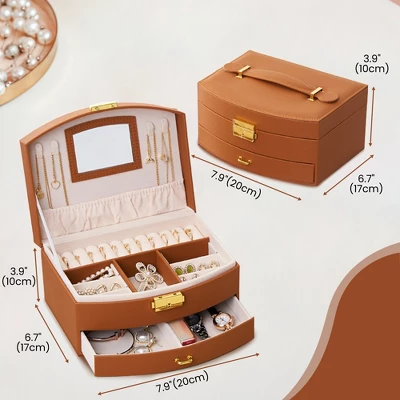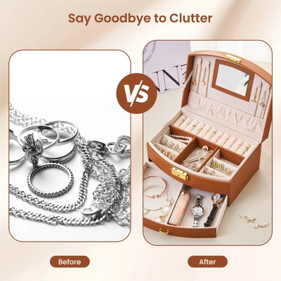 - Elegant and Luxurious: The classic brown color makes your room more cozy and is the perfect home decor. It also comes with a recessed mirror for easy dressing. The unique frame structure is sturdy and long-lasting to withstand heavy jewelry cosmetics. The morden style design is enough to meet your growing jewelry collection needs.