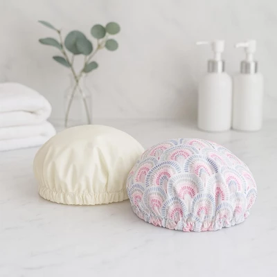 Elevate your hair care routine with the Spa Essentials 2-Pack Shower Caps, designed to combine function and fashion. Each pack includes two high-quality shower caps—one with a soft, solid pastel color and one with a chic printed design—so you can rotate between elegant minimalism and playful patterns. Crafted with a waterproof outer layer and a comfortable elastic band, these caps keep your hair dry during showers, baths, and beauty treatments. Whether you’re protecting a blowout or just need a no-fuss solution for daily showers, these reusable shower caps are your go-to for dependable, stylish hair coverage. Designed for all hair types and lengths.