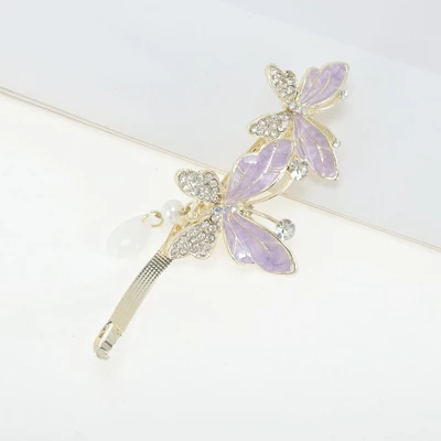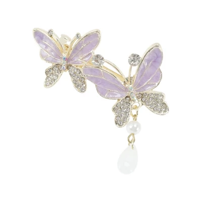 Unique Bargains Exquisite Butterfly Pendant Spring Clip Hair Clips Purple Silver Tone 1 Pc