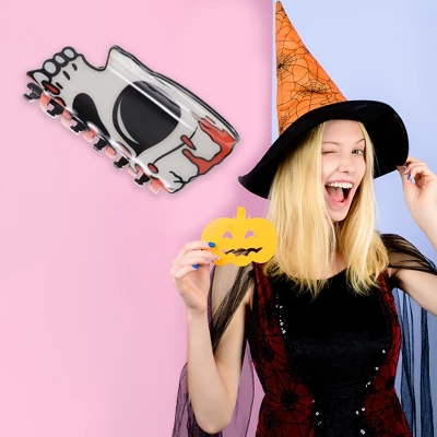 Unique Bargains Women’s Halloween Skeleton Claw Clip Black Red 1 Pc