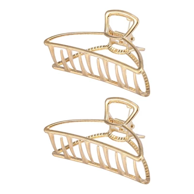 Feature: Whether it is for daily wear and matching, hair cutting or styling, it provides quick casual fashion styling or semi-formal haircut. It is suitable for a variety of styles and occasions.Fashion style and easy to use, suitable for thick/normal/thin/long/ short/curly/straight hair, fit for almost females in daily use and can comfortably clamp the hair and provide firm support without falling.Durable material, not easy to broken and long service life. All Occasions: This metal hair clip is suitable for all types of hair, especially for fixing loose hair or creating an interesting look. It is also suitable for parties, work, travel and daily use. Nice hair accessories for everyday wear. Specification:Color: Gold Tone; Material: Metal. Note: Please allow 1-5mm differences due to manual measurement. Package Included: 2 Hair Claw Clips.